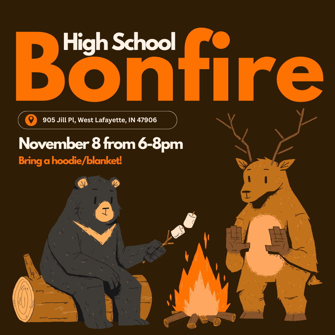 Bring a friend to a fun, fall bonfire as we enjoy dinner, carve pumpkins, and enjoy some smores! All materials will be provided and the cost is FREE! Details below: